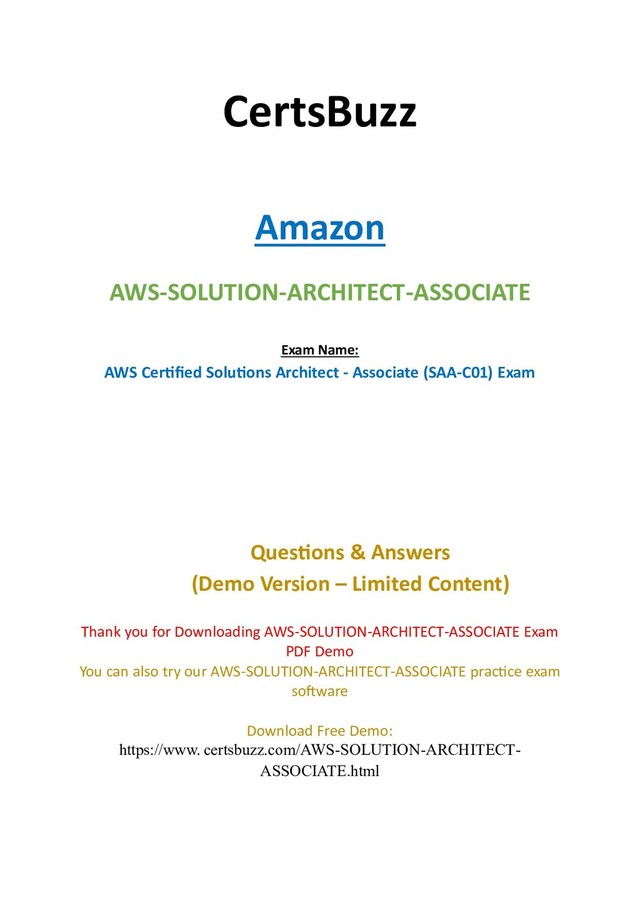 CertsBuzz offering substantial and refreshed AWS-Solution-Architect-Associate-Exam question that will assist you with preparing as indicated by the legitimate certifications exams. To guarantee your ideal arrangement we have given each and everything required for your exam. In Certsbuzz affirmation, Amazon exam dumps there is not all that much. Our readiness material is accessible in the PDF design just as Practice test software. You can without much of a stretch download your required learning material in any savvy gadget and begin your planning.