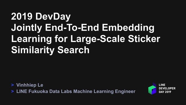 Vinhhiep Le LINE Fukuoka Data Labs Machine Learning Engineer https://linedevday.linecorp.com/jp/2019/sessions/S1-03