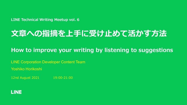 your writing by listening to suggestions LINE Corporation Developer Content Team Yoshiko Horikoshi 12nd August 2021 19:00-21:00