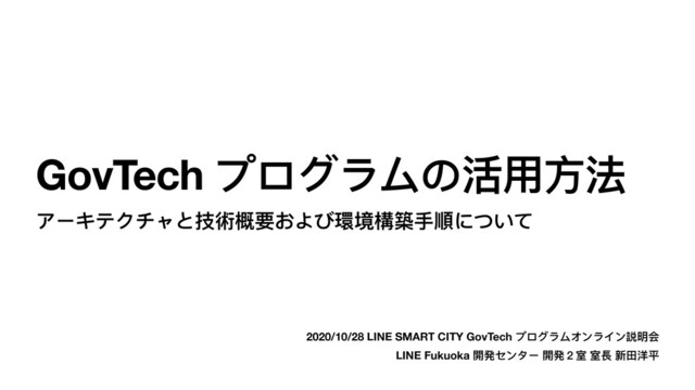 新田洋平(LINE Fukuoka株式会社) LINE SMART CITY GovTech プログラムオンライン説明会での発表資料です https://linecorp.connpass.com/event/191029/