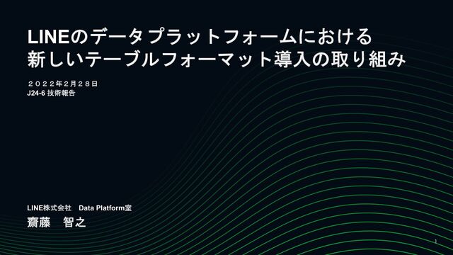 LINEのデータプラットフォームにおける 新しいテーブルフォーマット導入の取り組み 齋藤 智之 LINE株式会社 Data Platform室 2022年2月28日 J24-6