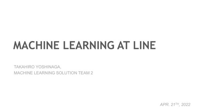 profit through ML solutions to various LINE services 機械学習に関するLINE社内での標準化・⺠主化の推進 Lead standardization/democratization process of ML use at scale across LINE (inc. group companies) together w/ other data-related teams/depts. 「⼤量のデータが⽇々⽣成される」事業領域に注⼒ (⾳声, NLP, OCR, 画像など、特定ドメインに特化した専⾨組織も存在)