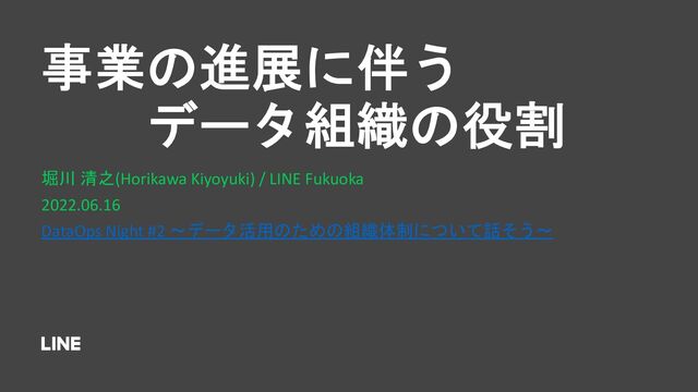 「事業の進展に伴うデータ組織の役割」 LINE Fukuoka 株式会社 Data Scientist 堀川 清之