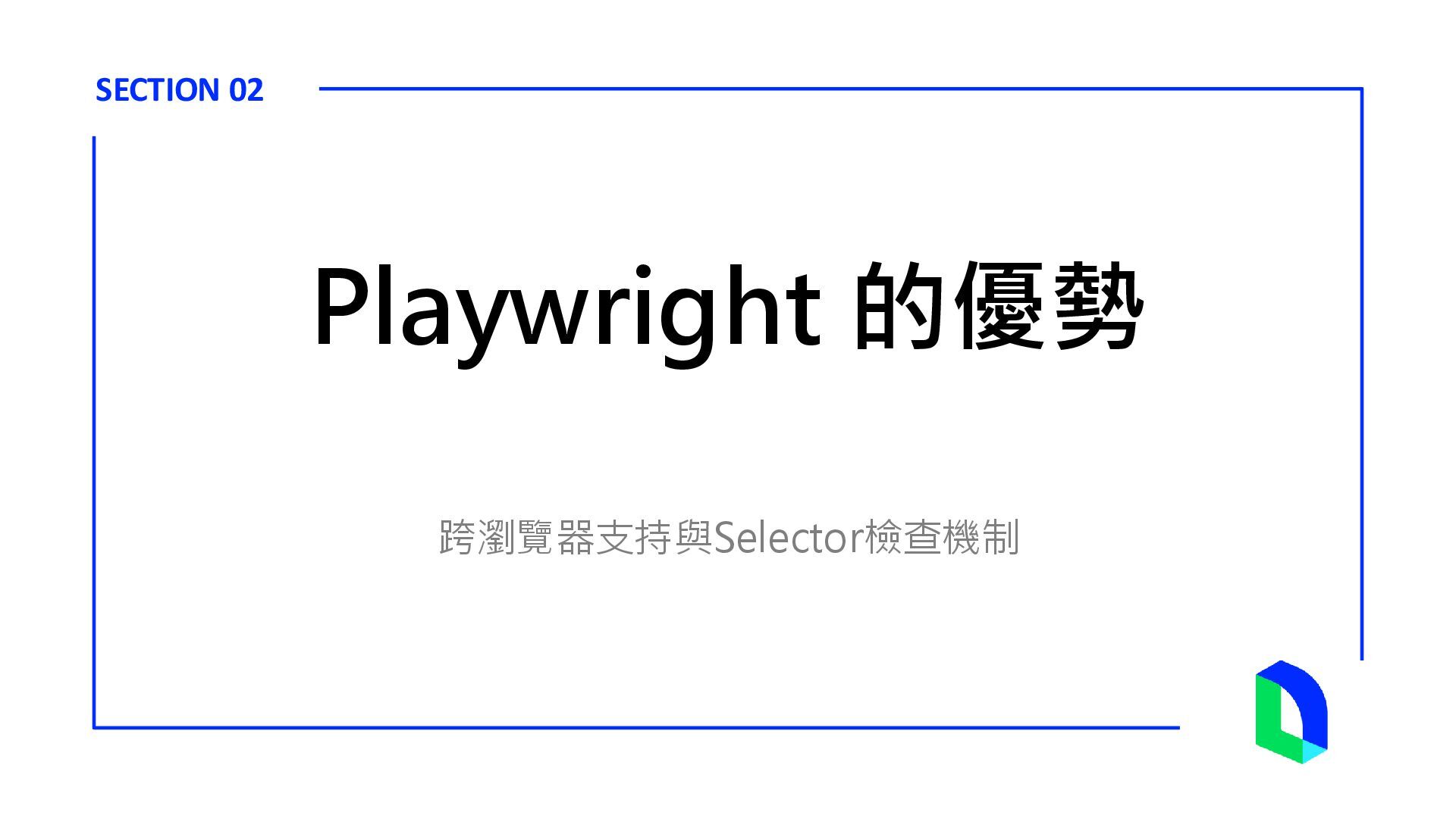 SECTION 02 跨瀏覽器支持與Selector檢查機制 Playwright 的優勢
