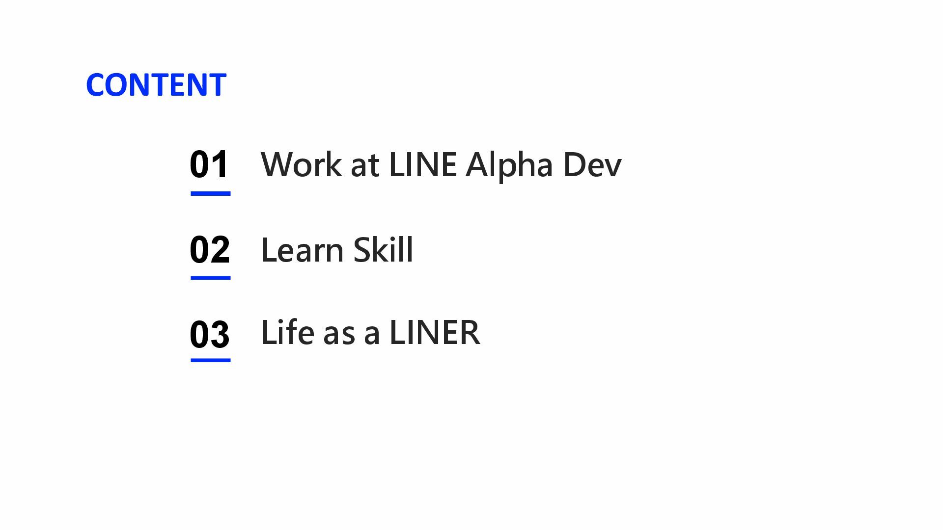 01 02 03 Work at LINE Alpha Dev Learn Skill