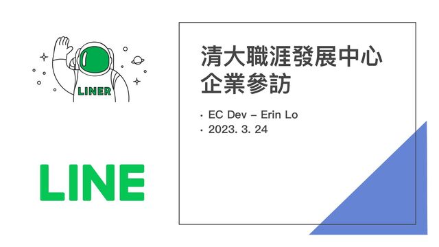 清⼤職涯發展中⼼ 企業參訪 • EC Dev - Erin Lo • 2023.