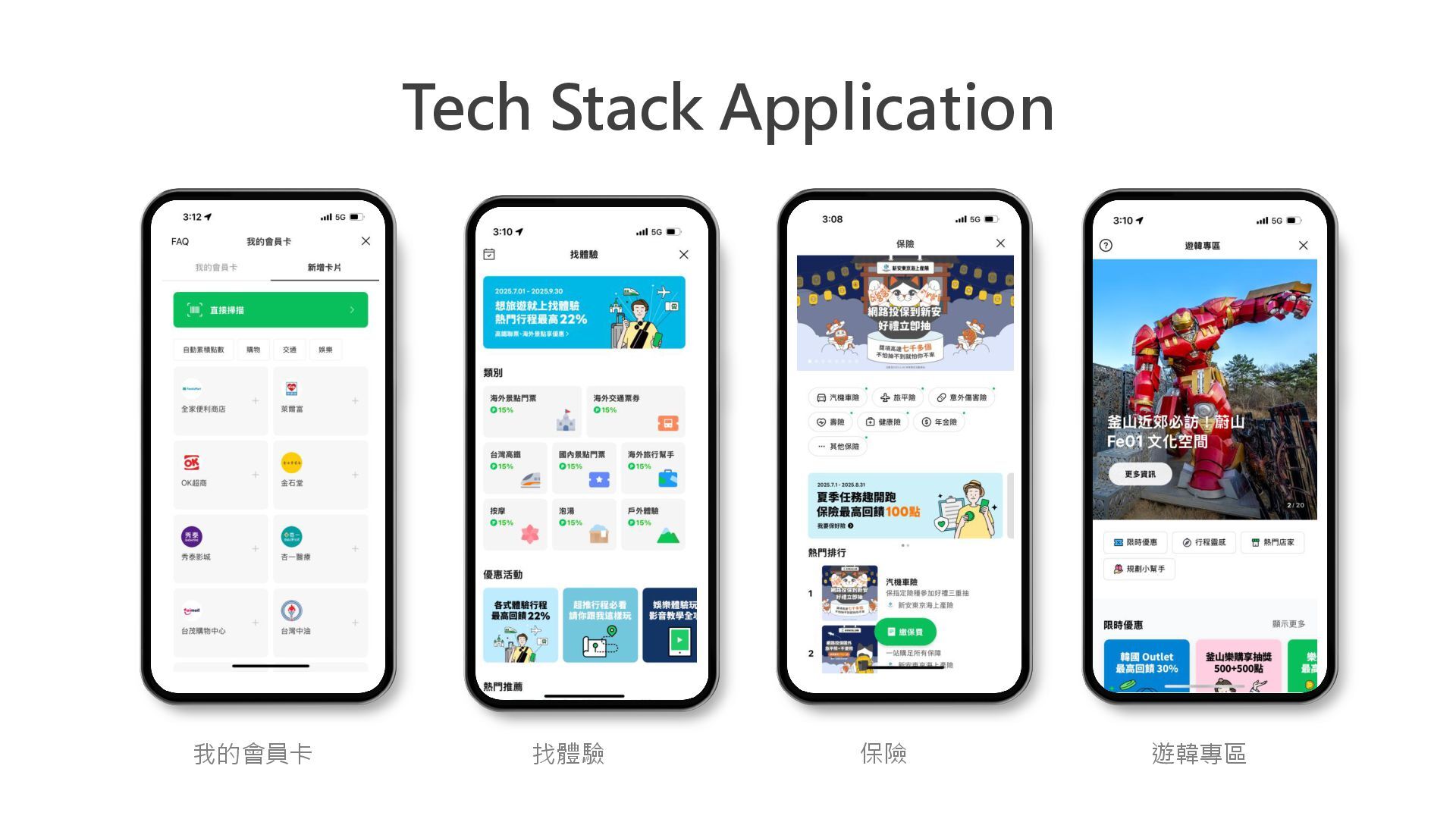 找體驗 Tech Stack Application 我的會員卡 保險 遊韓專區