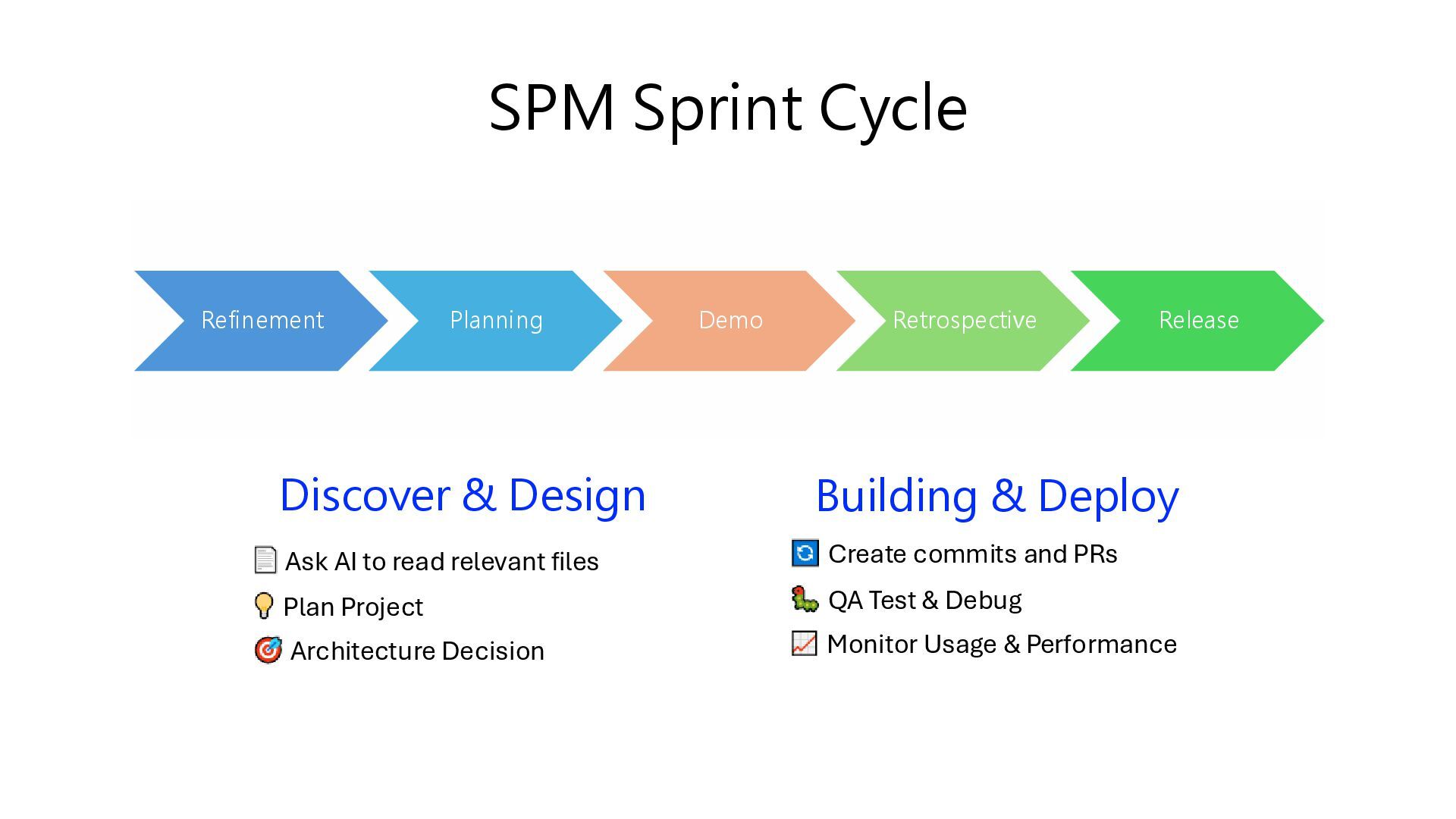 SPM Sprint Cycle Refinement Planning Demo Retrospective Release Discover &