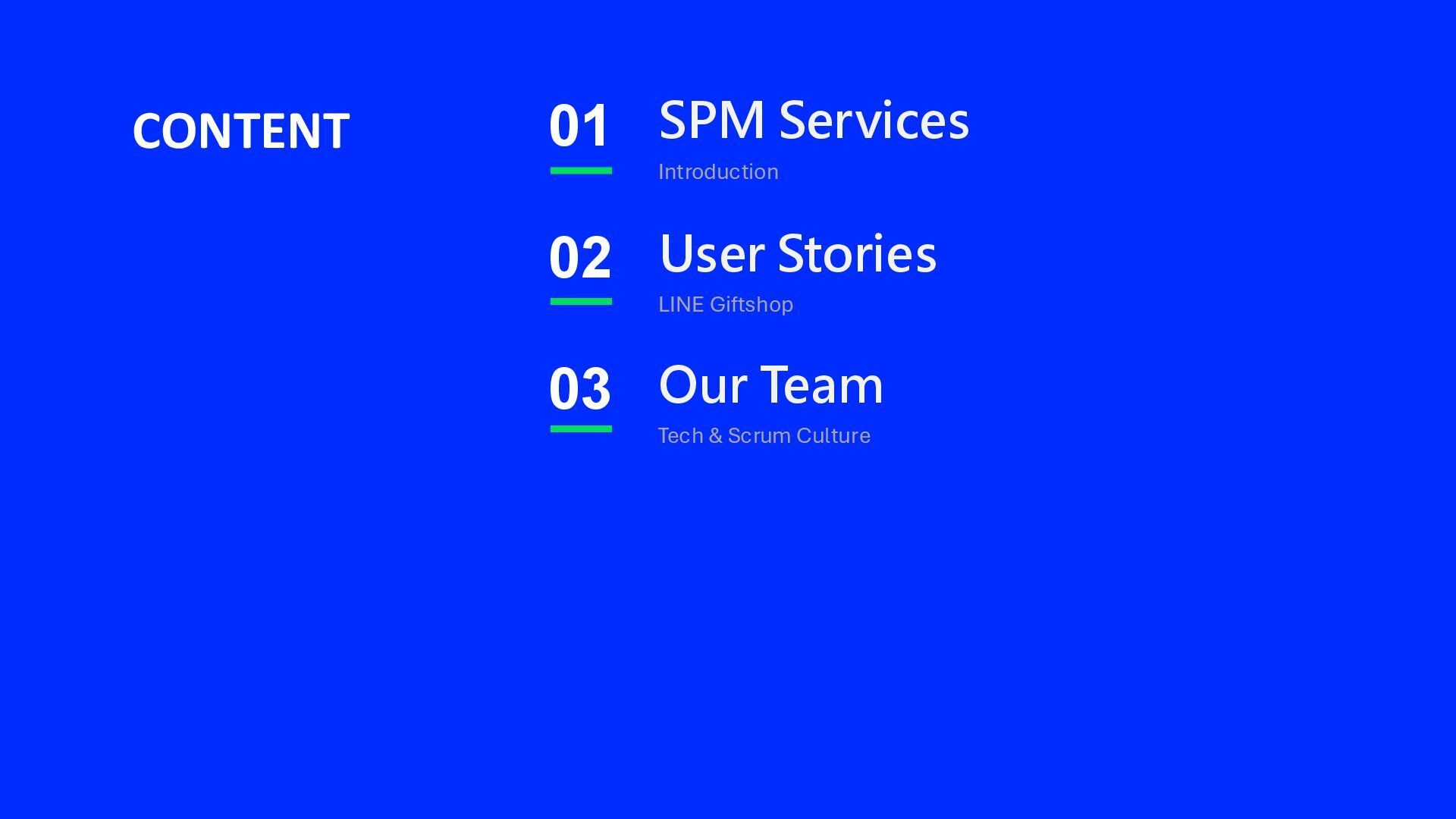 User Stories Our Team SPM Services CONTENT