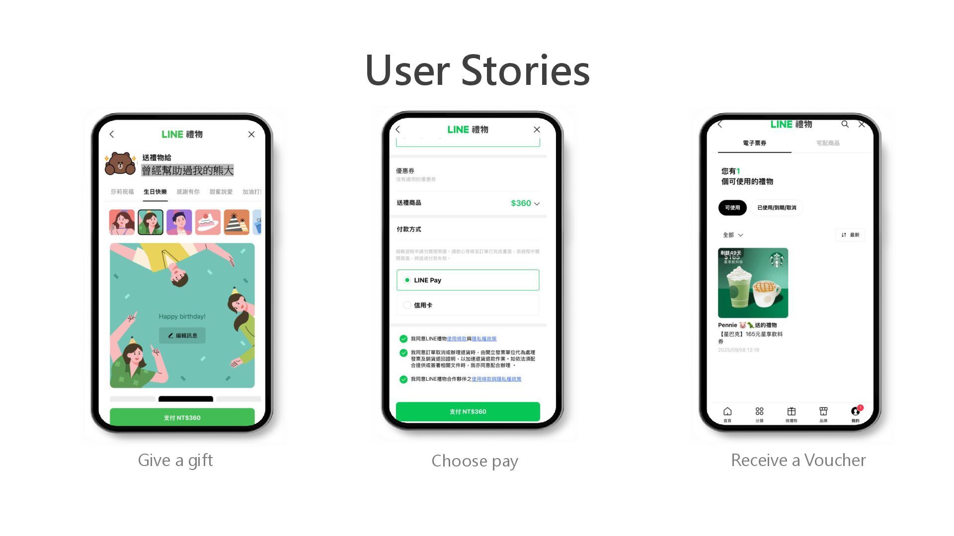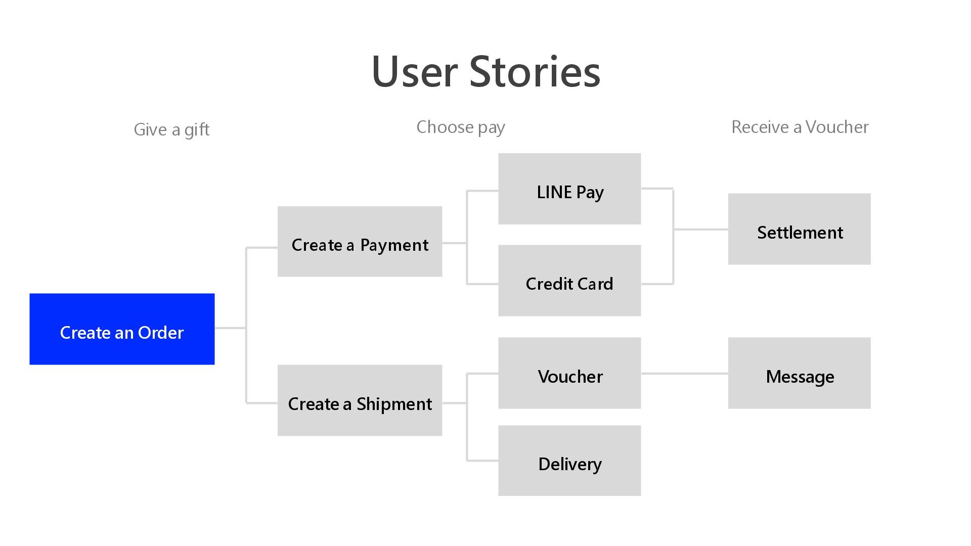User Stories Choose pay Give a gift Receive a Voucher