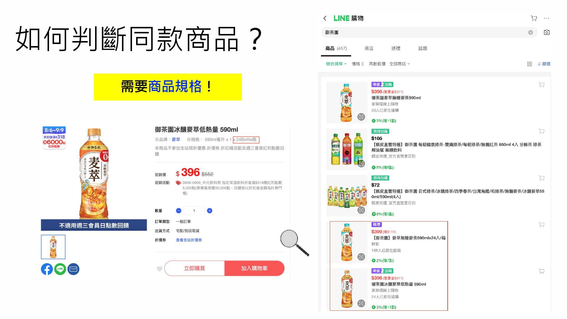 如何判斷同款商品? 需要商品規格!