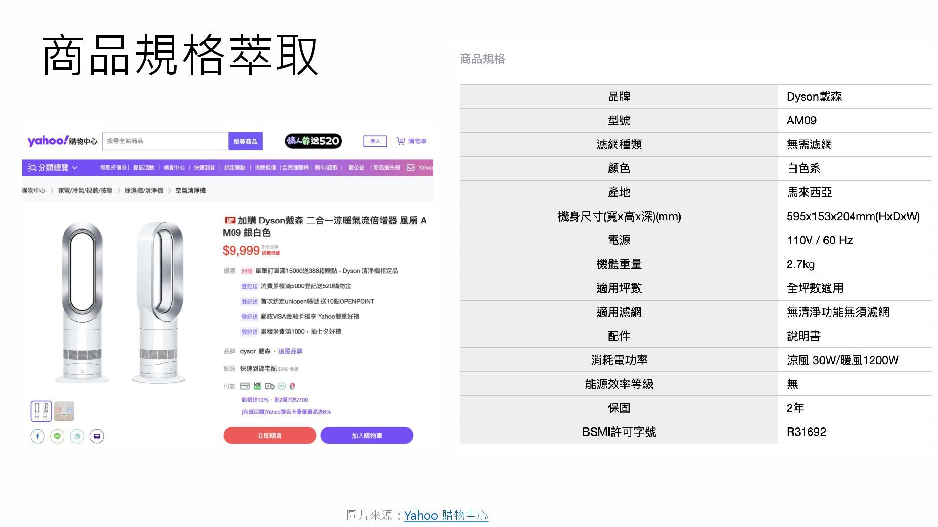 商品規格萃取 圖片來源:Yahoo 購物中心