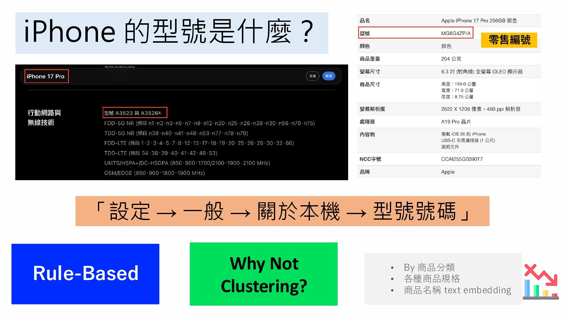 iPhone 的型號是什麼? Rule-Based Why Not Clustering? • By 商品分類 •
