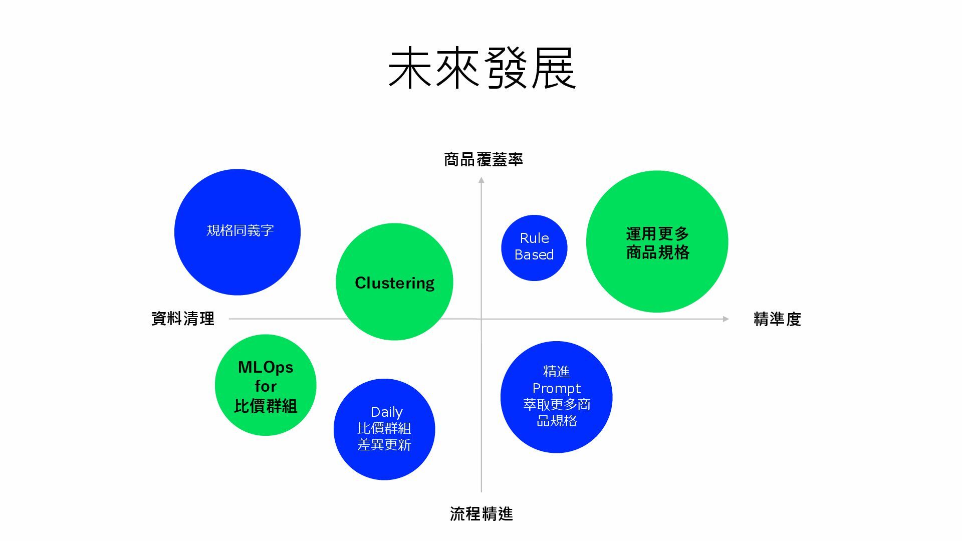 品規格 資料清理 精準度 商品覆蓋率 流程精進 未來發展 Clustering MLOps for 比價群組 規格同義字