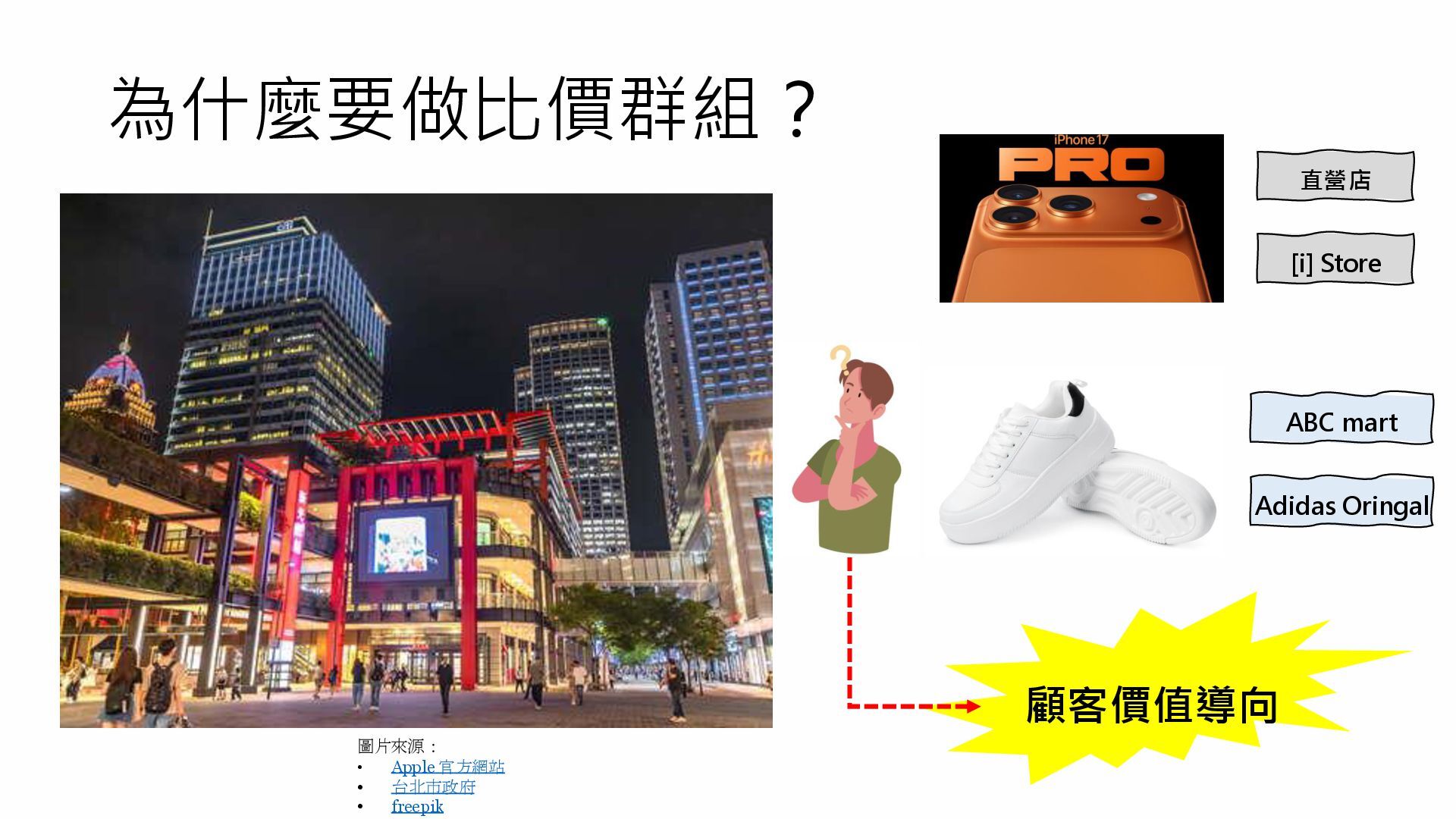 為什麼要做比價群組? 圖片來源: • Apple 官方網站 • 台北市政府 • freepik 直營店