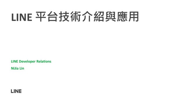 LINE 平台技術介紹與應用 LINE Developer Rela/ons NiJia Lin