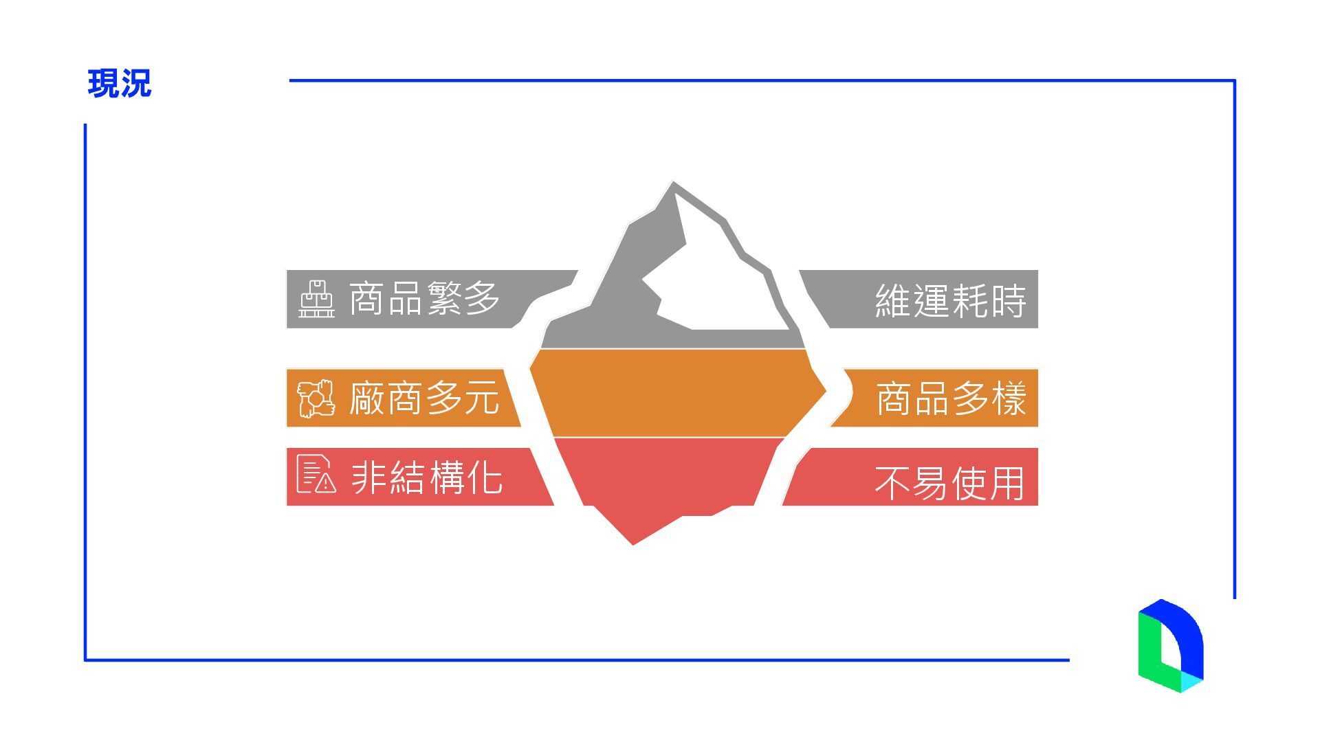 現況 商品繁多 維運耗時 廠商多元 商品多樣 非結構化 不易使用
