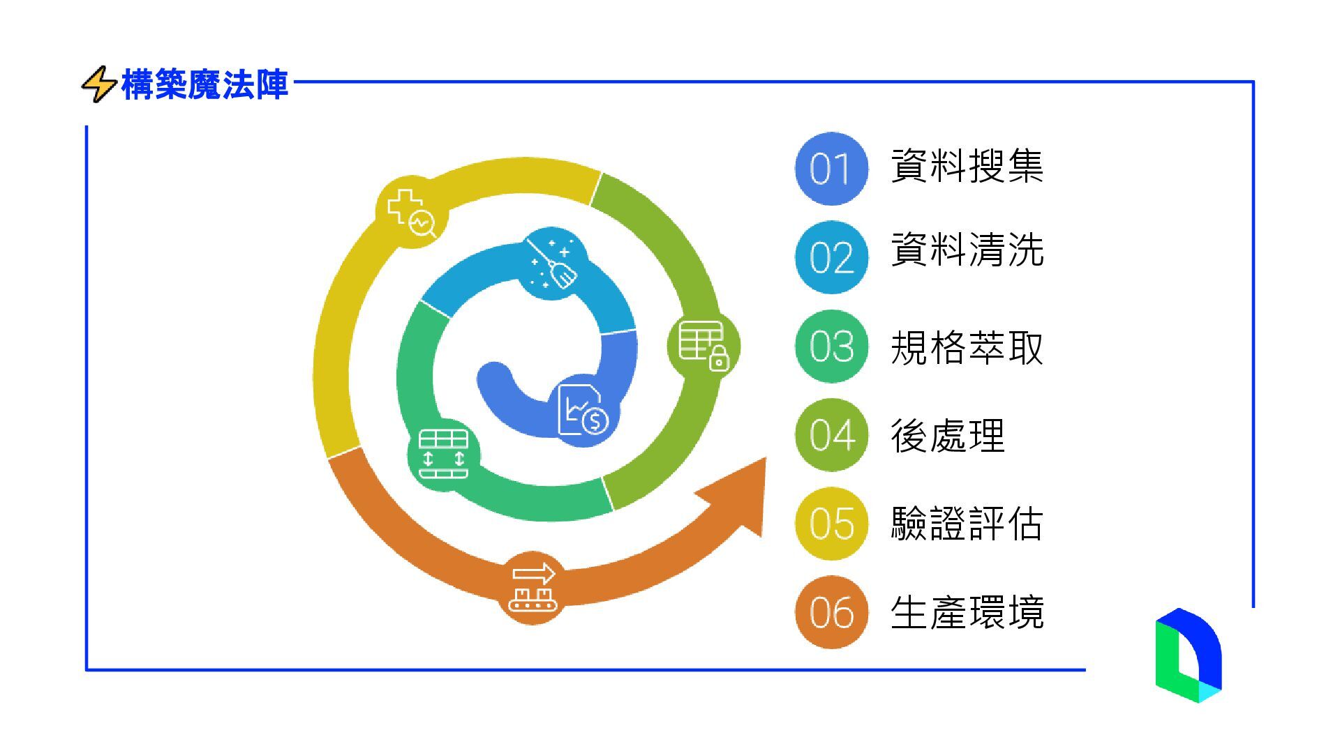 構築魔法陣 資料搜集 資料清洗 規格萃取 後處理 驗證評估 生產環境