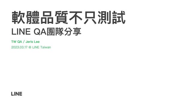 軟體品質不只測試 LINE QA團隊分享 TW QA / Jeris Lee 2023.03.17 @
