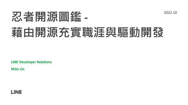 忍者開源圖鑑 - 藉由開源充實職涯與驅動開發 LINE Developer Rela/ons NiJia Lin 2022.10