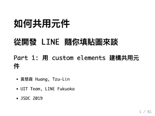 如何共用元件 - 從開發LINE隨你填貼圖來談 by 黃慈霖 Tzu-Lin Huang、Jesse @JSDC 2019