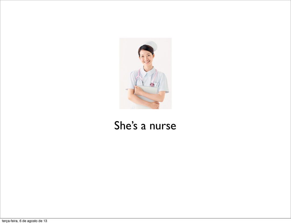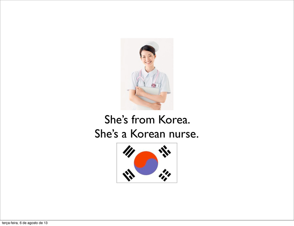She’s from Korea. She’s a Korean nurse. terça-feira, 6 de