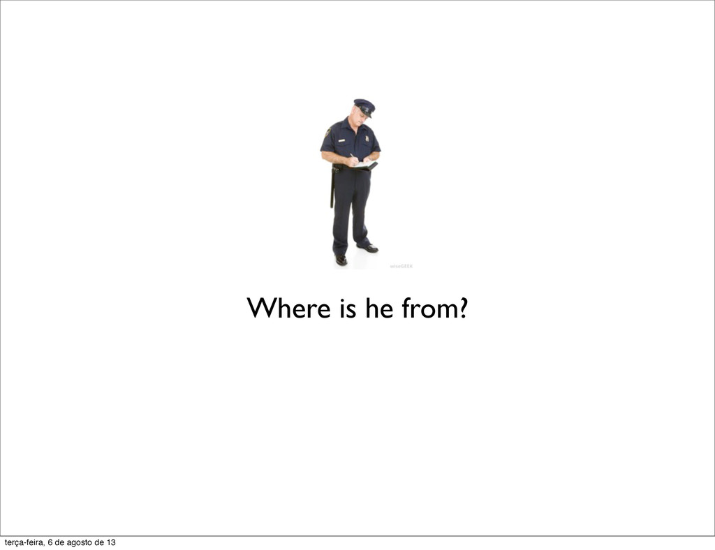 He’s from Italy. He’s an Italian police officer. terça-feira, 6