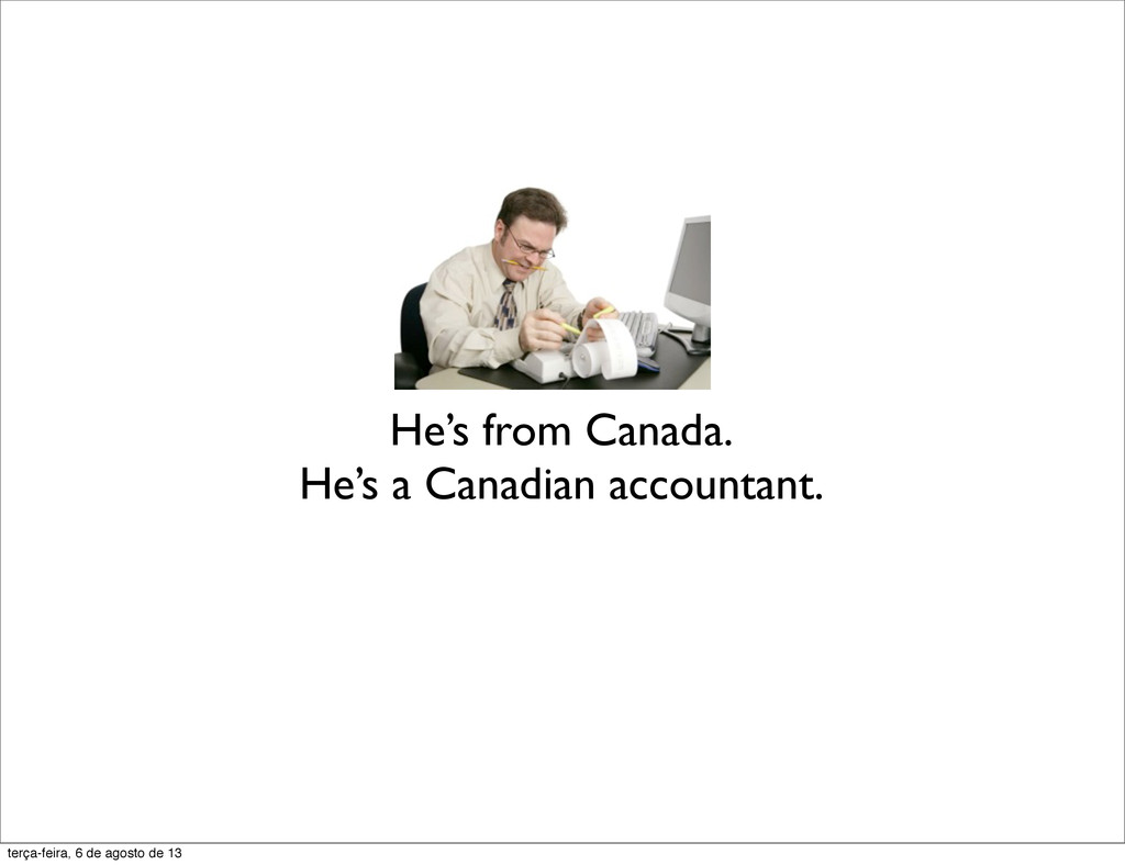 He’s from Canada. He’s a Canadian accountant. terça-feira, 6 de