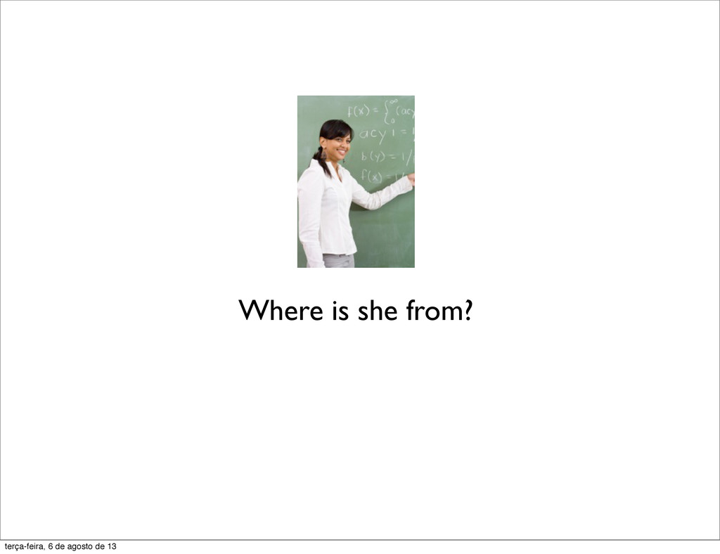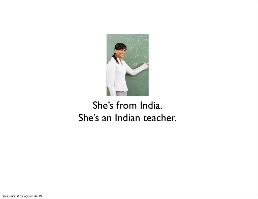 She’s from India. She’s an Indian teacher. terça-feira, 6 de