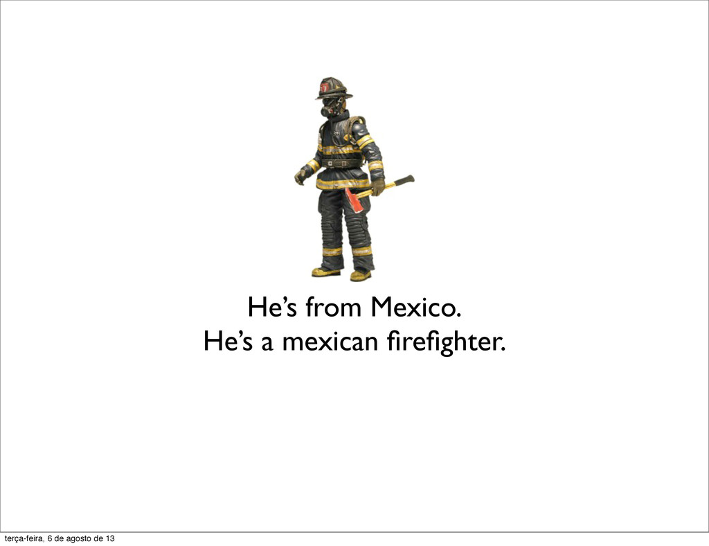 He’s from Mexico. He’s a mexican firefighter. terça-feira, 6 de
