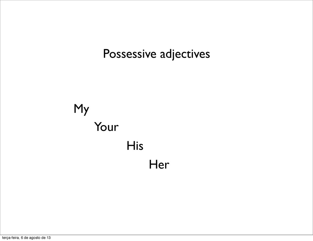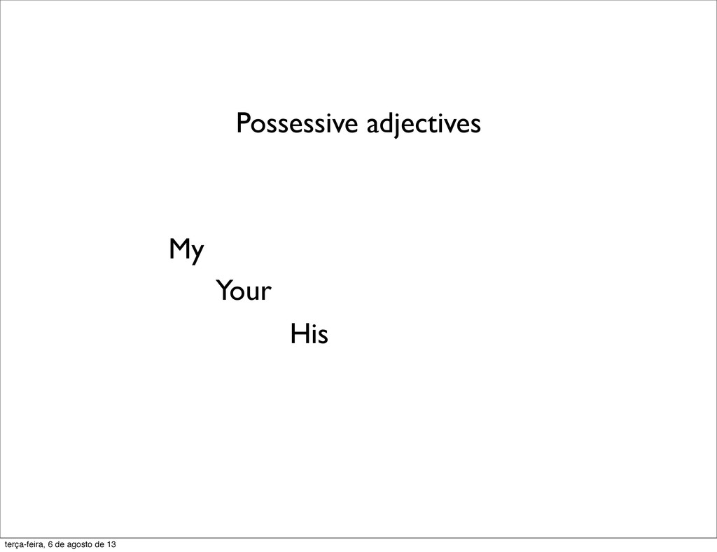 Possessive adjectives My Your His Her terça-feira, 6 de agosto