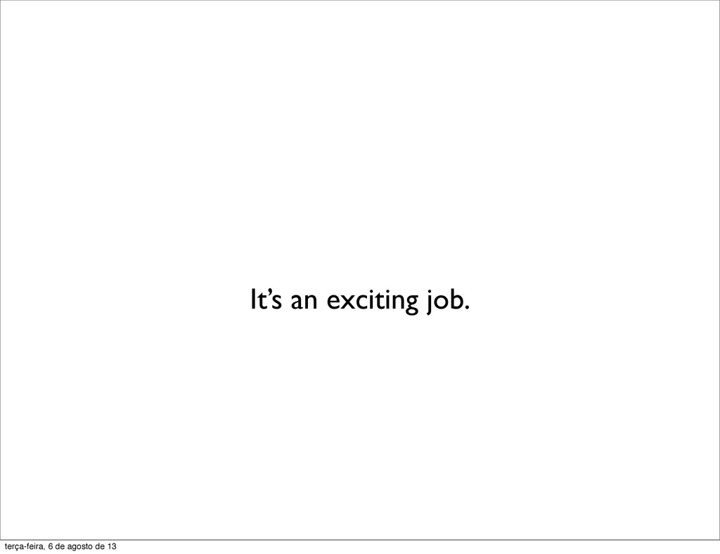 It’s an exciting job. terça-feira, 6 de agosto de 13