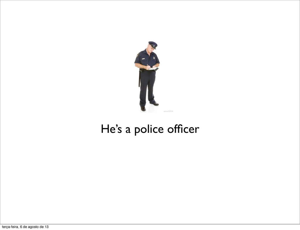 He’s a firefighter. terça-feira, 6 de agosto de 13
