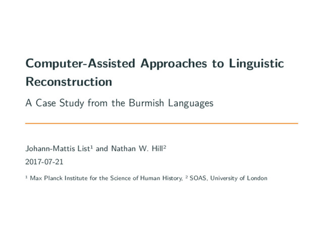 Burmish Languages Johann-Mattis List¹ and Nathan W. Hill² 2017-07-21 ¹ Max Planck Institute for the Science of Human History, ² SOAS, University of London