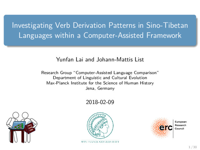 Framework Yunfan Lai and Johann-Mattis List Research Group “Computer-Assisted Language Comparison” Department of Linguistic and Cultural Evolution Max-Planck Institute for the Science of Human History Jena, Germany 2018-02-09 very long title P(A|B)=P(B|A)... 1 / 30