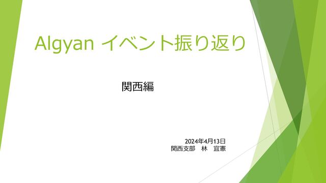 Algyan イベント振り返り 関西編 2024年4月13日 関西支部 林 宜憲