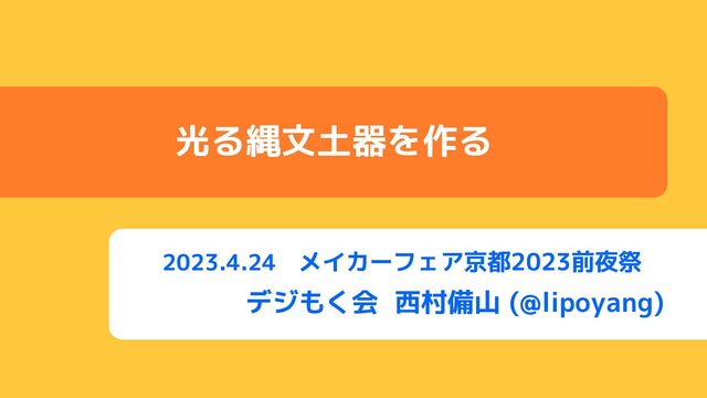 2023.4.24 メイカーフェア京都2023前夜祭 デジもく会 西村備山 (@lipoyang) 光る縄文土器を作る