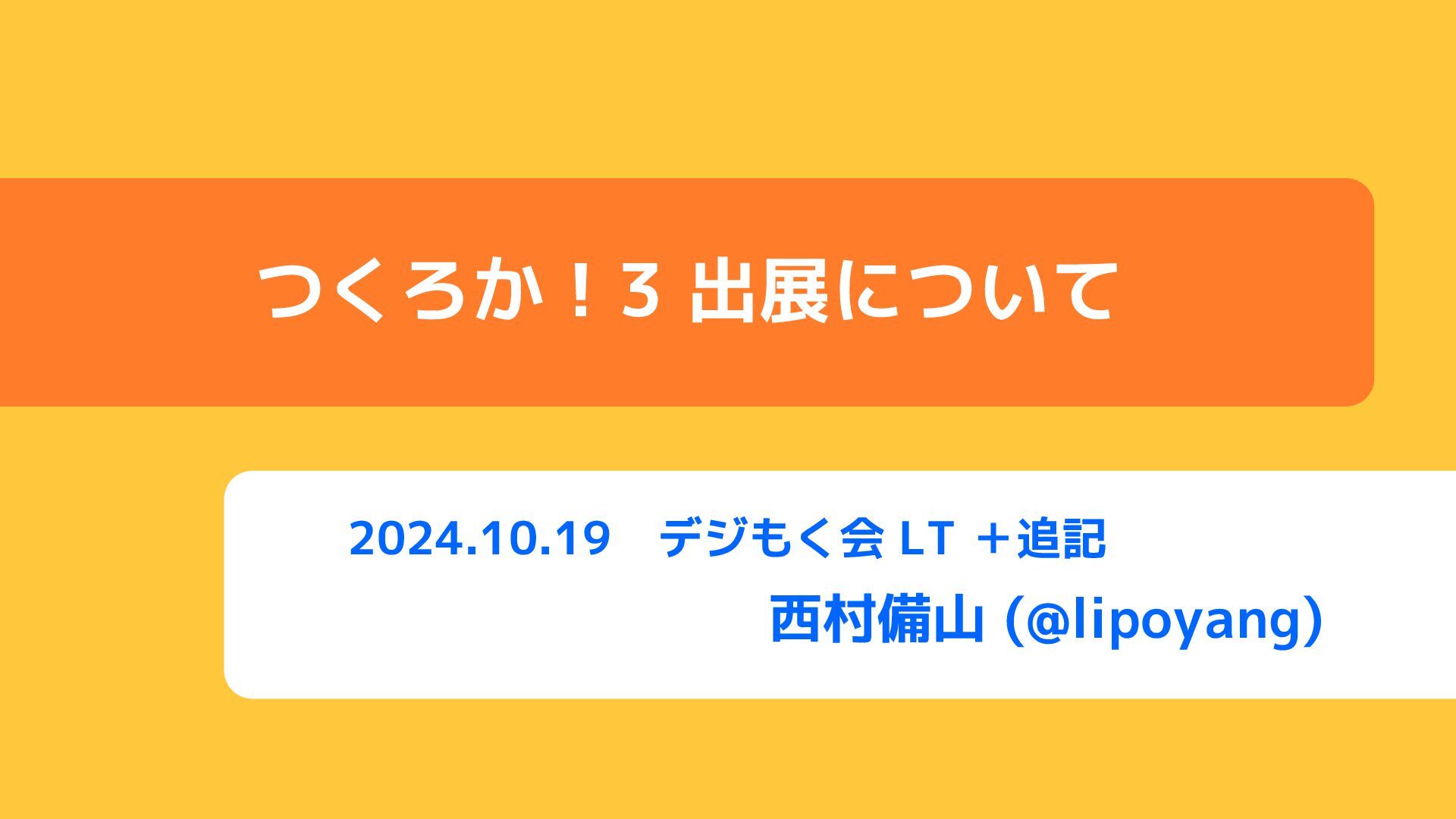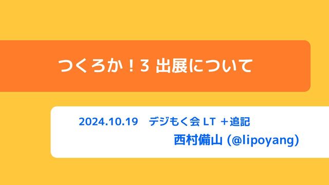 2024.10.19 デジもく会 LT +追記 西村備山 (@lipoyang) つくろか!3 出展について