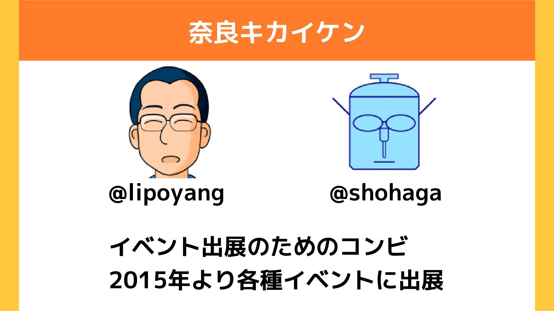 奈良キカイケン イベント出展のためのコンビ 2015年より各種イベントに出展 @lipoyang @shohaga