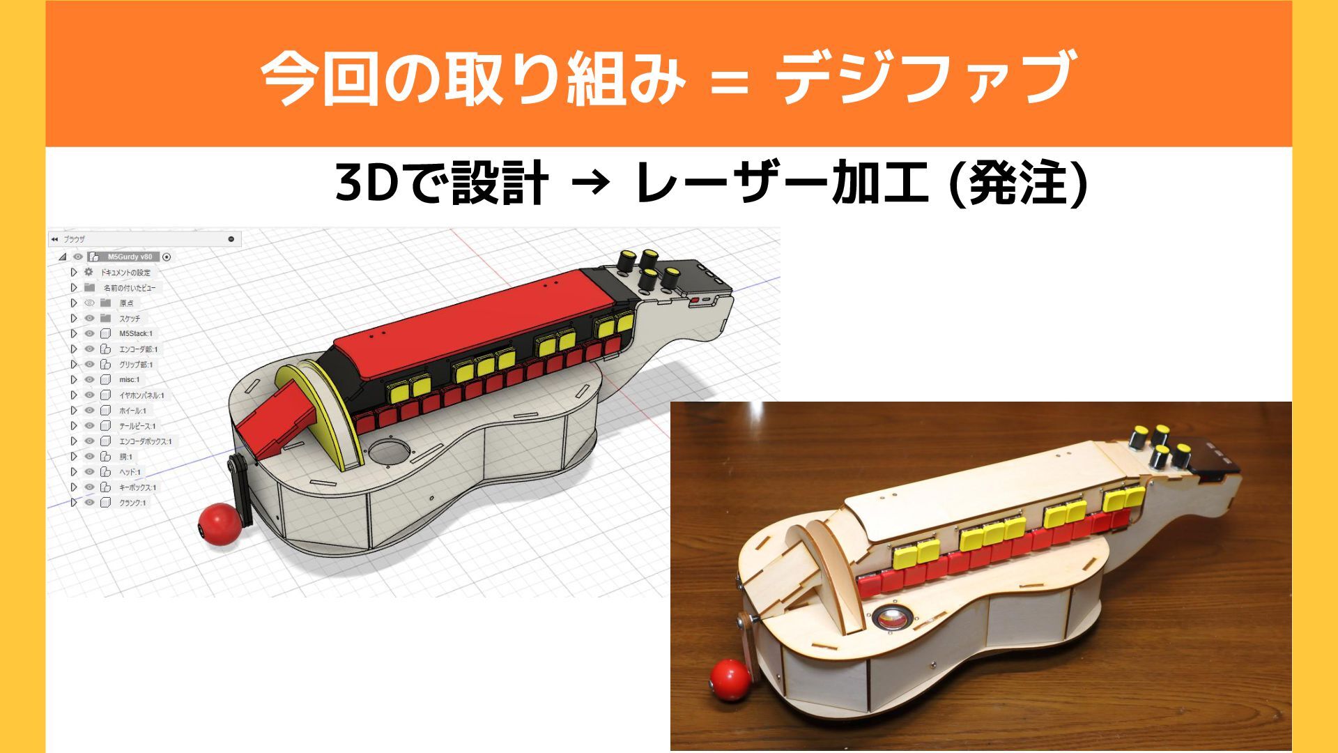 今回の取り組み = デジファブ 3Dで設計 → レーザー加工 (発注)
