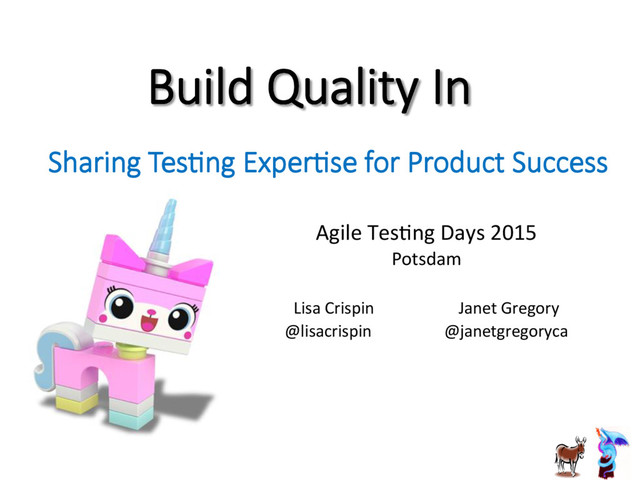 Team", hFp:// thesocialtester.co.uk/t-‐shaped-‐tester-‐square-‐shaped-‐team/, 2013 • Levison, Mark, "The Beginner's Mind -‐ An Approach to Listening", hFp:// www.infoq.com/news/2008/08/beginners_mind, InfoQ, 2008 • McMillan, Darren, "Mind Mapping 101", for Tes)ng: hFp:// www.beFertes)ng.co.uk/content/?p=956, 2011 • More Fearless Change, 2015, Mary Lynn Manns and Linda Rising, Addison-‐ Wesley • Carvalho, Paul – Pyramid and Quadrant hFp://swtester.blogspot.ca/2015/04/ agile-‐tes)ng-‐automa)on.html • Crispin, Lisa, "Applying the Dreyfus Model of Skill Acquisi)on", hFp://bit.ly/ 20l9ipo, 2012 • Gregory, Janet, "About Learning 2", hFp://janetgregory.ca/about-‐learning-‐2/ , 2010 • Wynne, MaF, "Introducing Example Mapping", hFp://bit.ly/1iw19w4 • Crispin, Lisa, "Applying the Dreyfus Model of Skill Acquisi)on", 40
