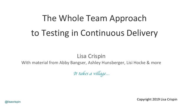 We had trouble fitting testing in with releasing every two weeks - how does it work if we release every day? Multiple times a day? Let's look at how we can succeed with testing and building quality in by engaging the whole team.