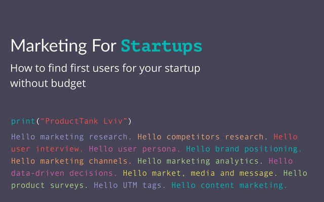 This is my talk from ProductTank meetup on April 2018. It will very useful for startup founders, who would love to promote their side projects 🚀 Presentation is based on 3 years experience of running our startup — tool for iOS developers to compare original designs with the real app in the iOS simulator (https://flawlessapp.io/).
