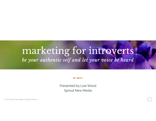 an Introvert 4 I N T R O V E R T S V S E X T R A V E R T S We get our energy from within Introverts need time alone to replenish energy levels, unlike extraverts, who get re-energized by connecting with people. We also have a tendency to spend a lot of time reflecting and can be hesitant to act on something. We like to fully analyze something before we jump. We’re comfortable doing things alone Introverts often prefer to do things alone or with just a few people that they are close to. We don’t need to be around people like extraverts do. We’re great at working solo, where extraverts often like working with background noise or in coffee shops and co-working spaces. We’re often sensitive to noise and activity Introverts prefer quiet, minimally stimulating environments. Stimulation comes in all forms – there’s social stimulation, but also lights, noise, and so on. So an introvert is more likely to enjoy a quiet glass of wine with a close friend than a loud party full of strangers. We’re critical thinkers, natural creatives, and great listeners We can shut out the world and take time to figure things out, to look at alternatives, to creatively problem solve. We are the thinkers, and thinkers are creative. And because we spend more time observing than talking, we make great marketers.