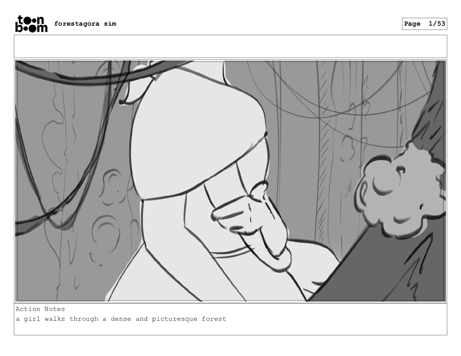 Action Notes a girl walks through a dense and picturesque