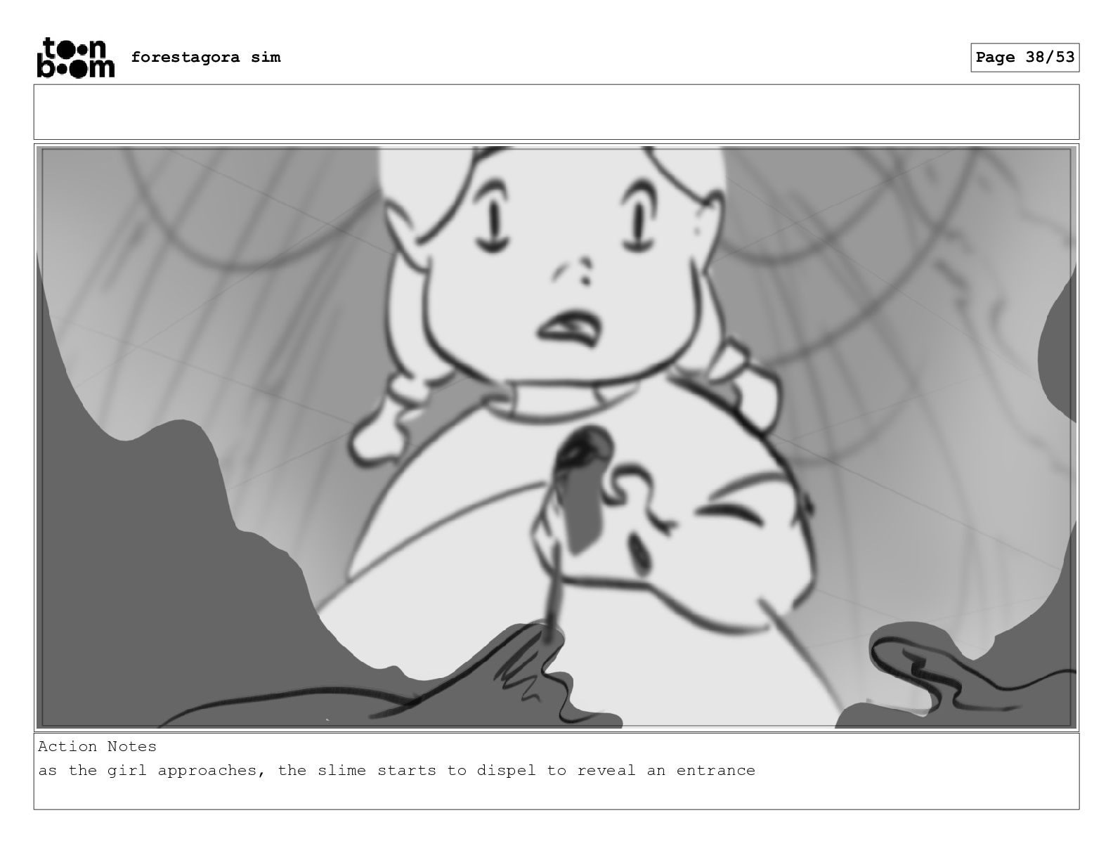 Action Notes as the girl approaches, the slime starts to