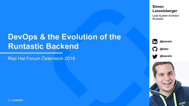 I will tell the story of how the Runtastic backend architecture evolved from 2 monoliths to a modern microservices architecture that will soon run on OpenShift. Besides all the architectural context I will also talk about team structure and how our culture changed over the years.