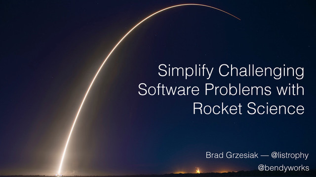 Aerospace engineering is really no more magical than programming, and yet it's shrouded in such mystery and mysticism that practically no one bothers to study it. I'll show you how to apply concepts from rocket science to challenging software problems, allowing you to spend more time coming up with answers rather than interpreting inputs. We'll also learn to control the universe outside our glowing rectangles.