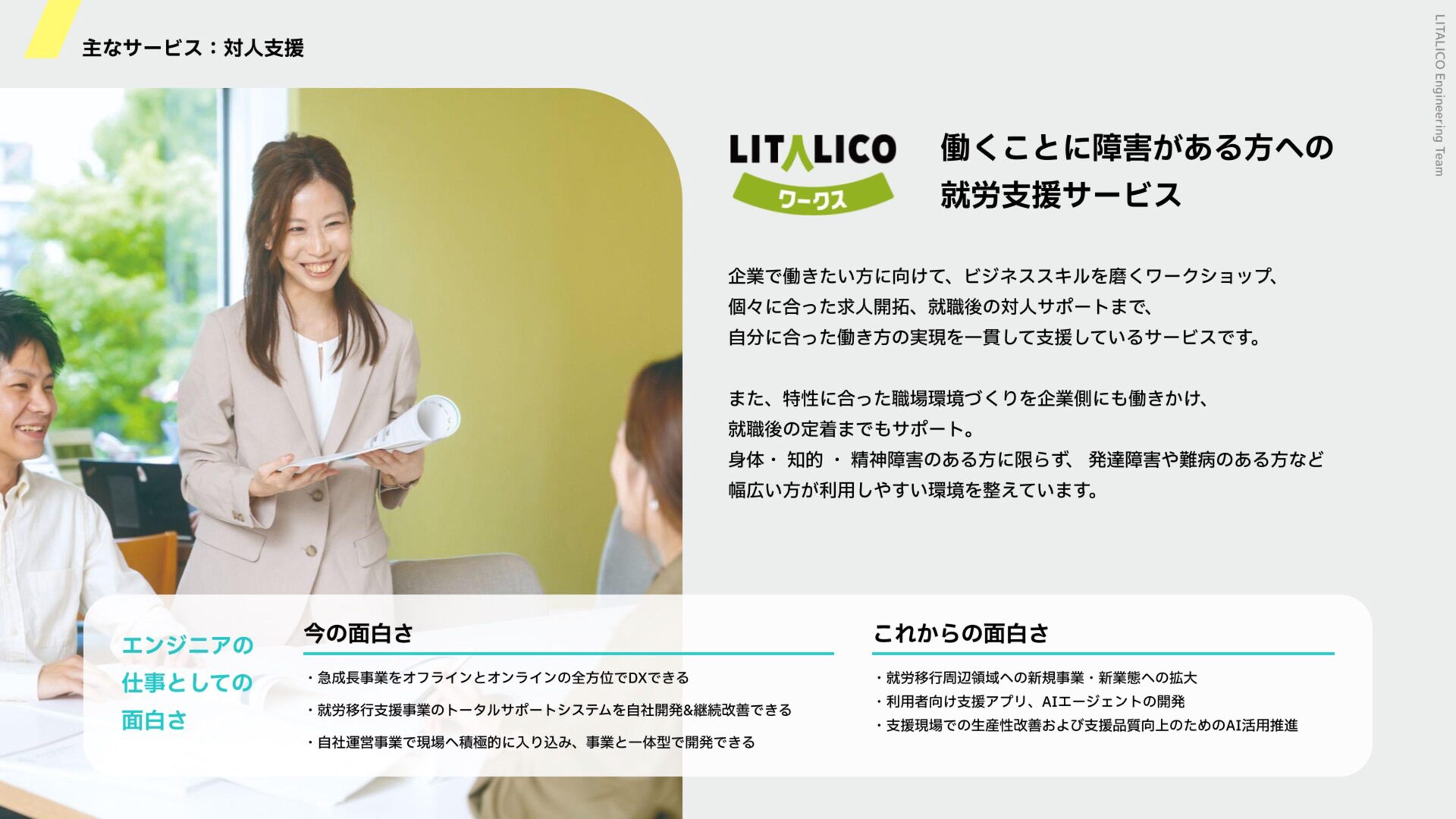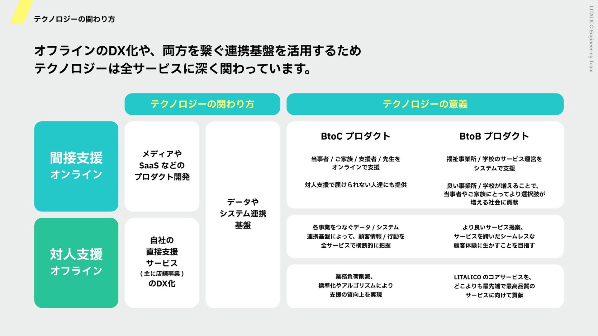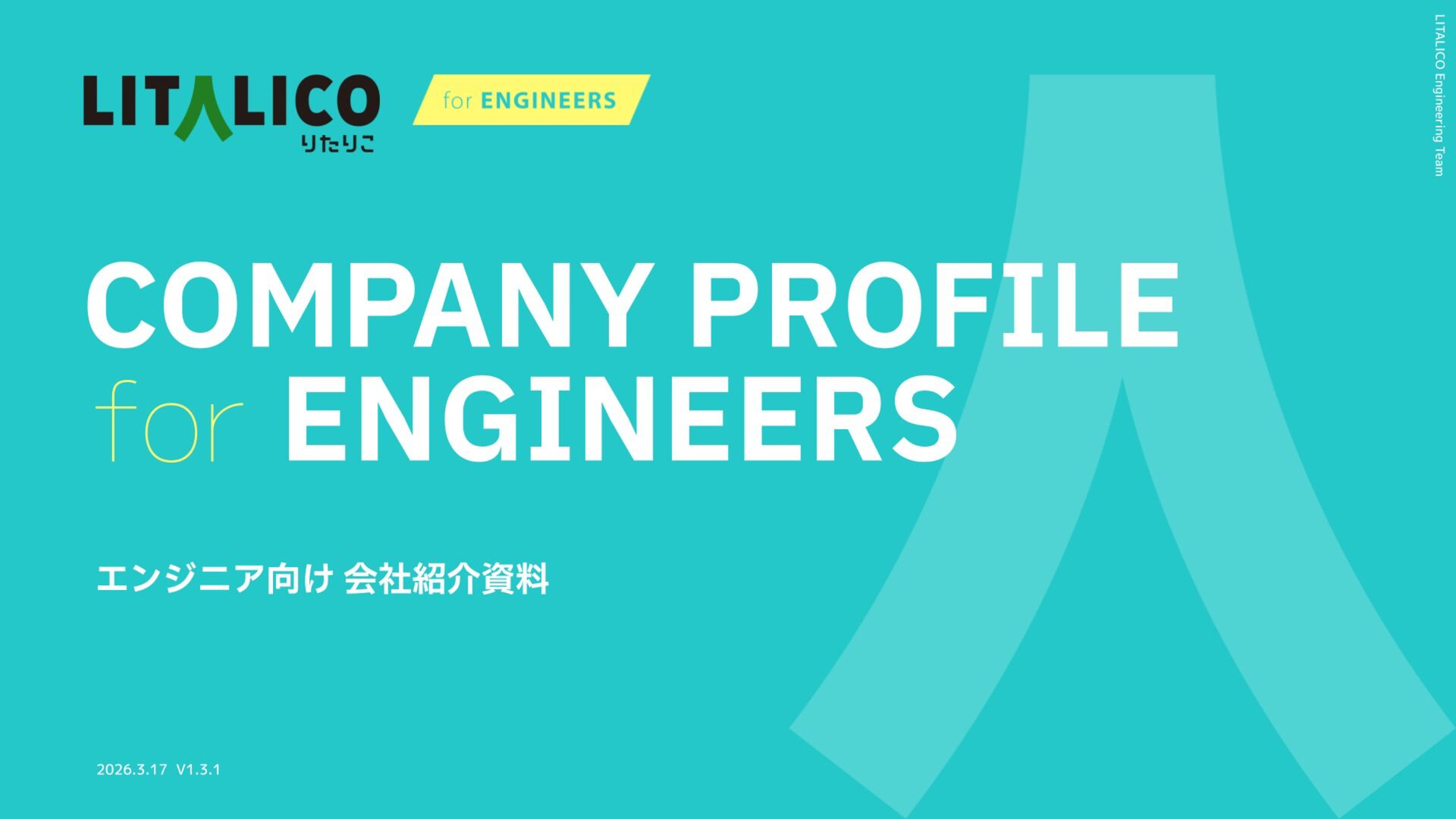 ご覧いただきありがとうございます。 LITALICOエンジニア向け会社紹介資料です。