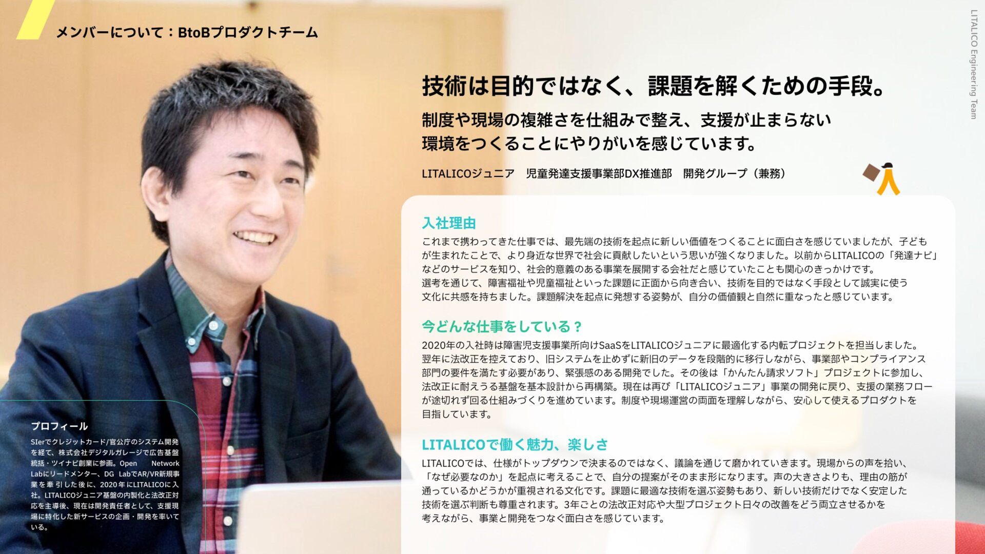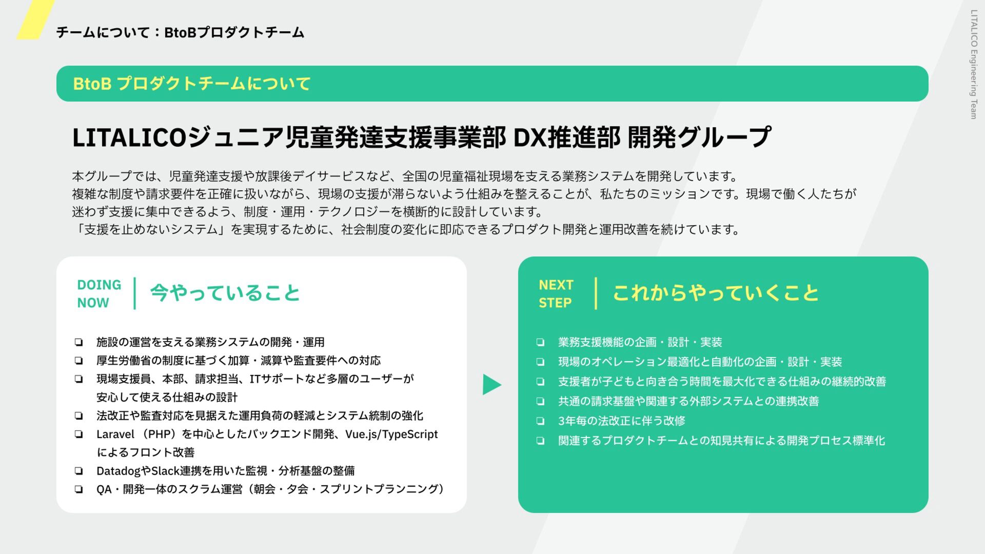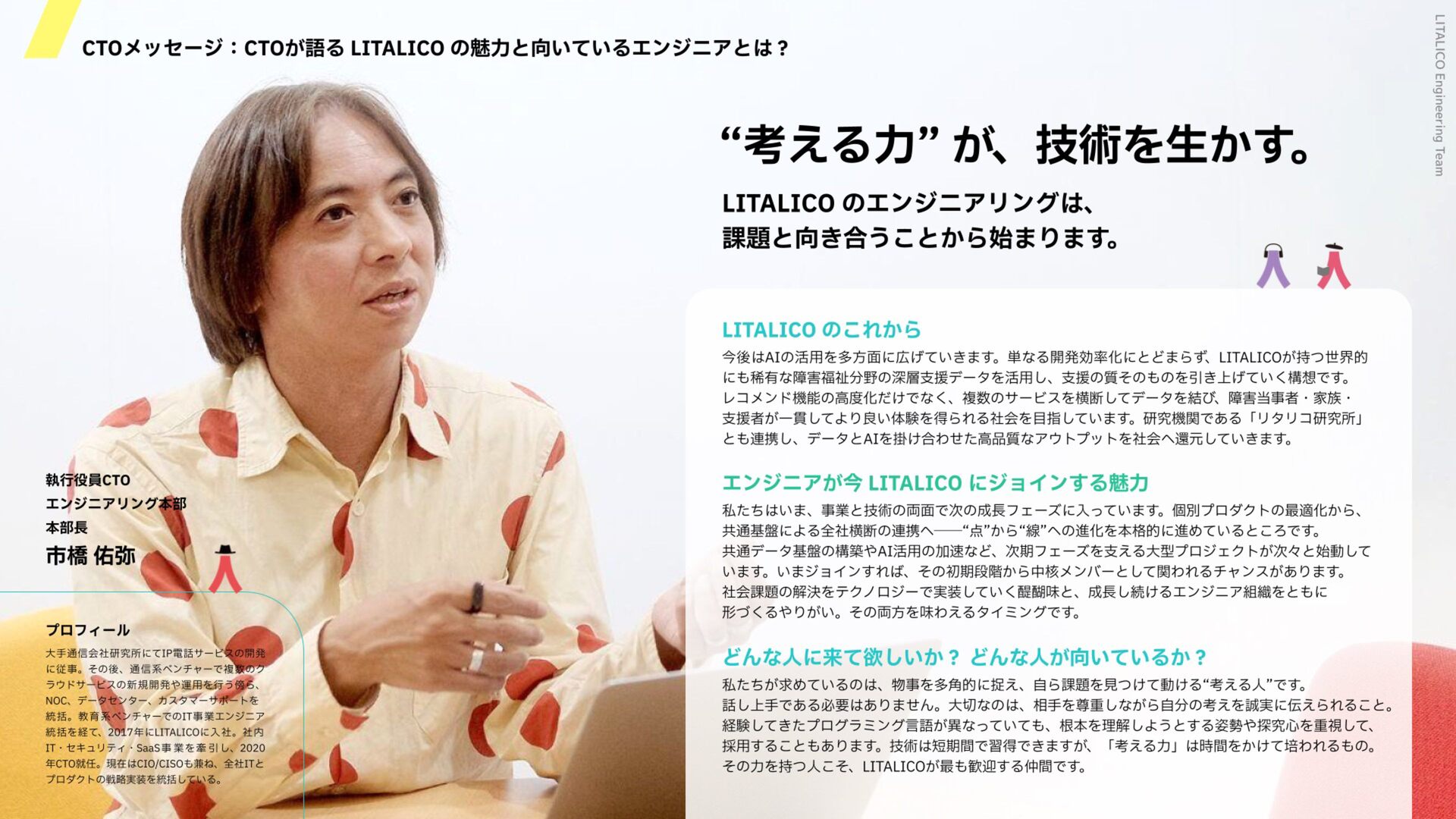 ご覧いただきありがとうございます。 LITALICOエンジニア向け会社紹介資料です。